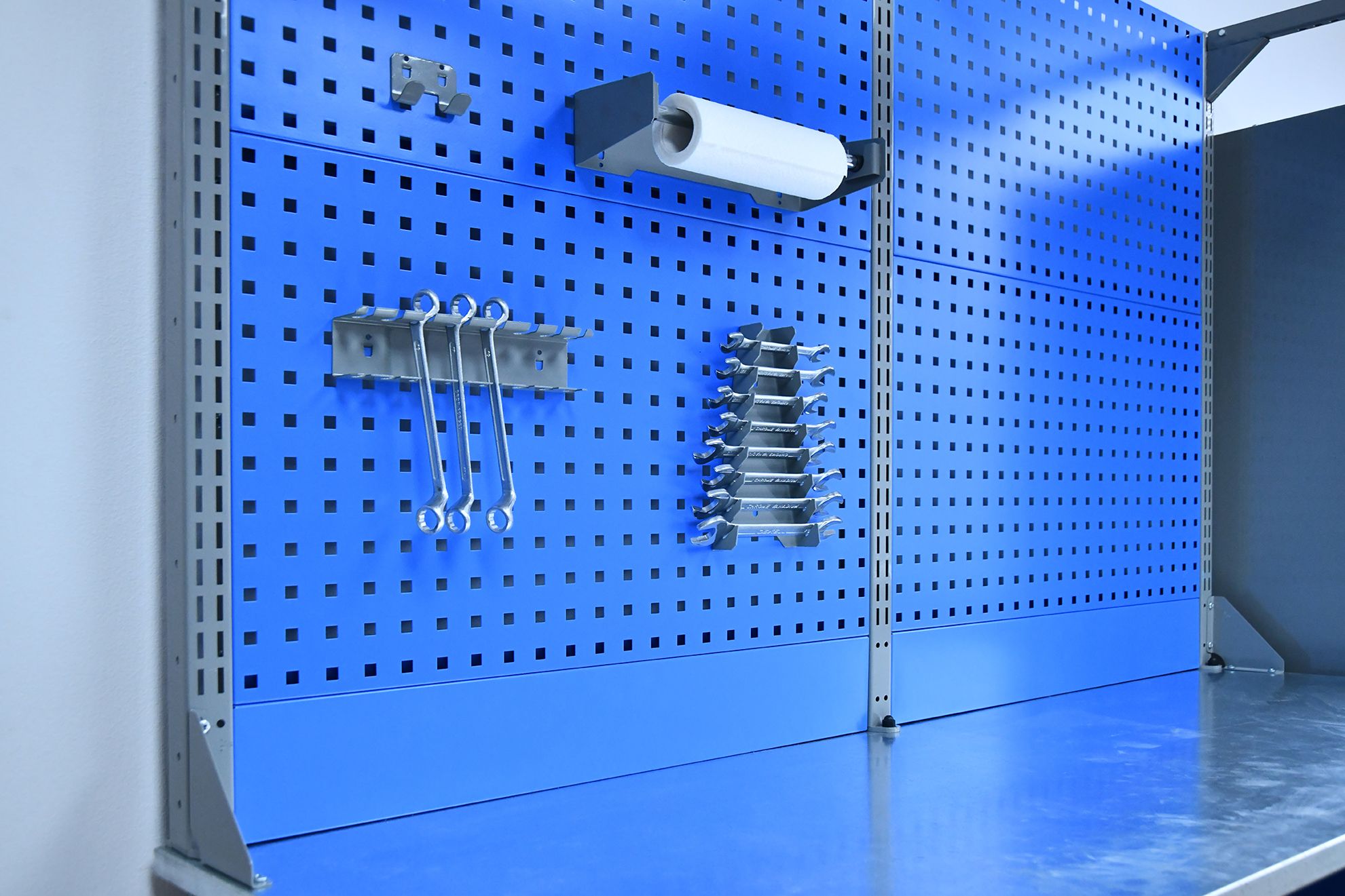 - Дополнительно к верстаку можно установить один или два перфорированных металлических экрана (перфорация 12×12 мм с шагом 38 мм).